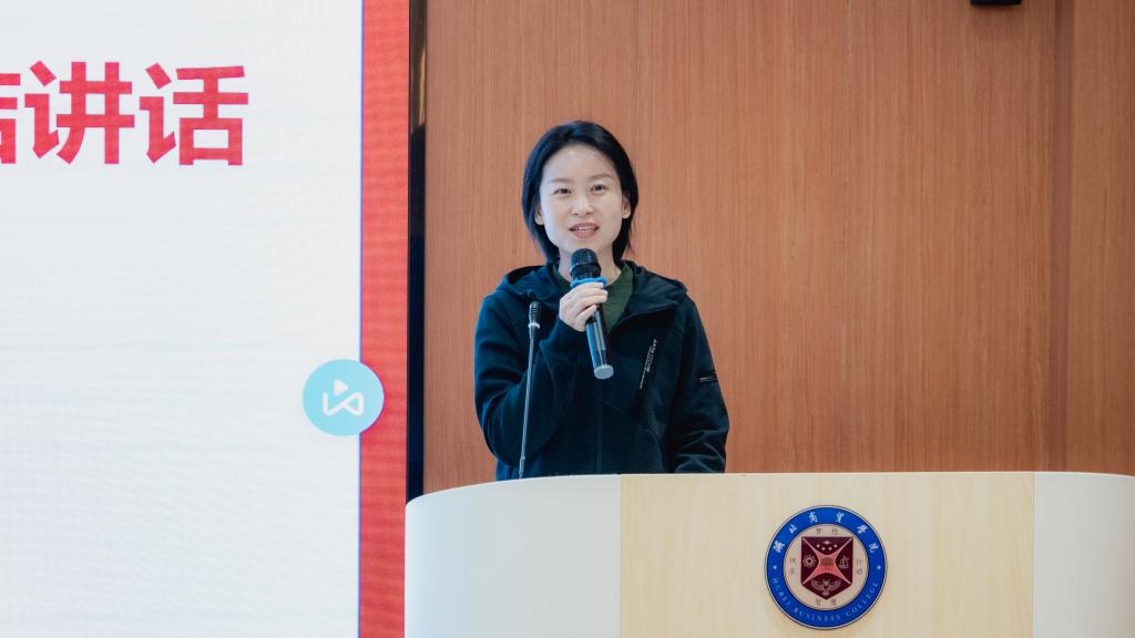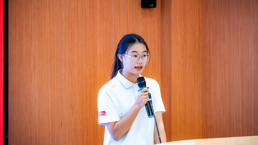 尹堰钦代表学院第一期“青马工程”培训班优秀学员发言。她结合自身成长经历,讲述了在理论课与实践课上的收获与感悟,鼓励新学员们珍惜学习机会、锤炼自我,以青马班的所学所悟为帆,将个人理想融入国家发展大局,努力成长为能担时代重任的青年马克思主义者,让青春在奉献中焕发光彩。