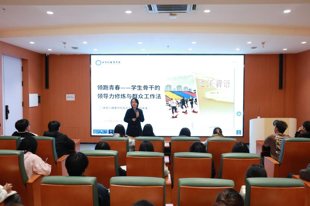 课上,刘冰清以《领跑青春——学生骨干的领导力修炼与群众工作法》为题,围绕“青年地位与使命”“青年成长路径”“党对青年工作的领导”三个方面,从“领导力内涵解析、骨干角色定位、群众工作方法、领导力修炼路径、沟通协调艺术、责任奉献精神”六个知识点,引导学员们深刻领会习近平总书记关于青年工作的重要思想。