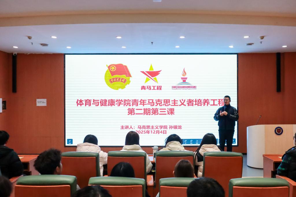12月4日,体育与健康学院第二期“青马工程”培训班第三次授课在学校图书馆报告厅举行,此次培训邀请到马克思主义学院教工党支部宣传委员孙银龙为全体学员授课赋能。本期青马班全体学员参与活动,活动由体育与健康学院团委书记韩夏主持。