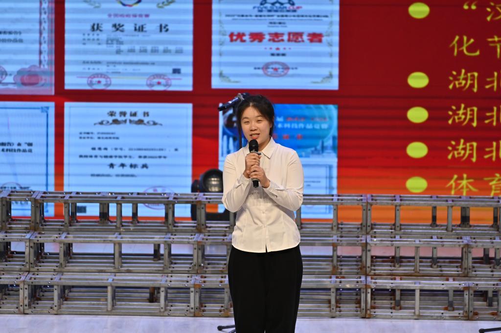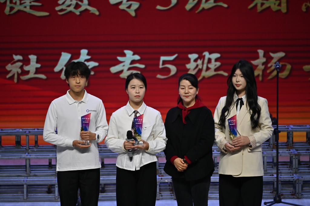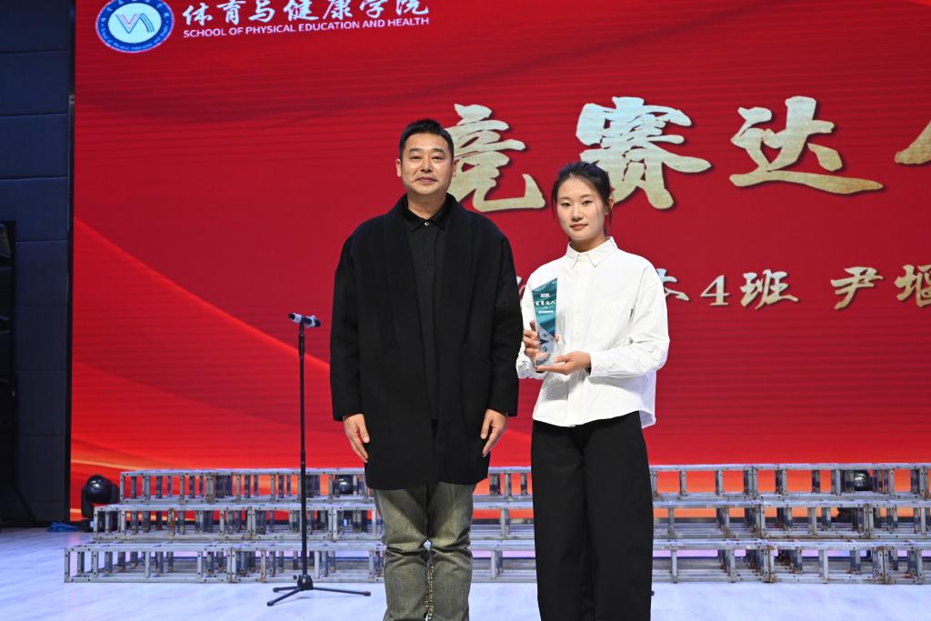在先进事迹分享环节,22级社体本1班的程思雨同学作为突出贡献奖获得者,分享了自己在大学四年里平衡学业与实践中的成长经验,讲述了自己在学科竞赛中团队协作、勇攀竞赛高峰的难忘经历。她深情感谢学校与老师们的悉心指导和精心培育,并以自身的成长历程,为在场学子树立了一个真实可感、催人奋进的榜样。