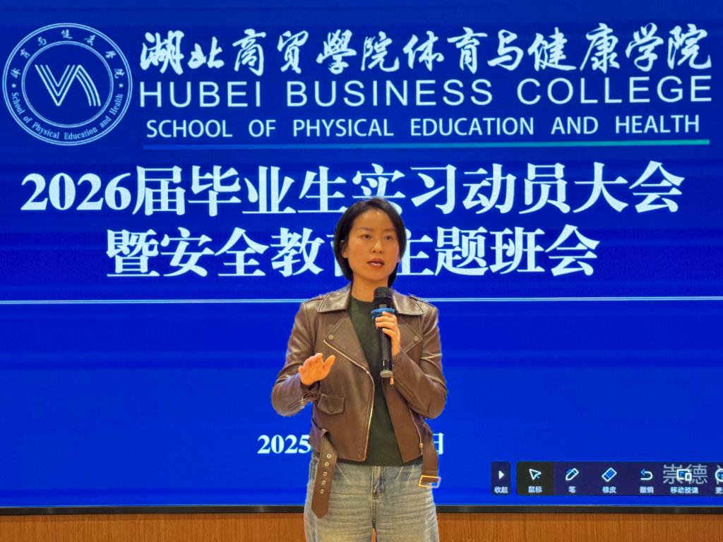 为全面部署2026届毕业生实习工作,确保学生平稳有序进入实习阶段,提升实习质量,夯实就业基础,10月19日与10月22日,体育与健康学院分别在武汉、咸宁两校区组织召开2026届毕业生实习动员及安全教育大会。学院全体党政班子成员、毕业班辅导员及2026届全体毕业生参会,会议由毕业班辅导员韩夏、关耀钦分别主持。