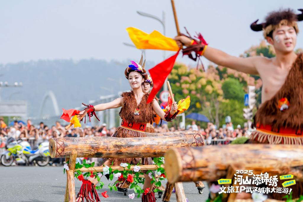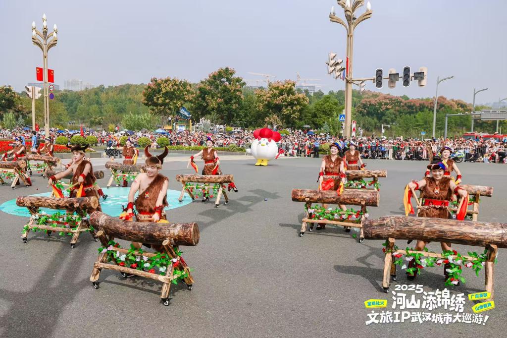 本次巡游活动,大型花车矩阵堪称最大亮点。首发六辆主题花车分别以“河山锦绣”“初心如磐”“楚风汉韵”“非遗国潮”“动漫萌宠”和“全球狂欢”为主题惊艳亮相。随后,湖北文旅主轴的“神武峡”“赤黄红”主题花车及14辆市州花车依次登场,每辆花车都秉持“一车一主题,一车一故事”的理念,将我省丰富的文旅资源生动呈现。与此同时,沿途近千名演员组成的表演方阵带来精彩演出,将现场节日氛围拉满。