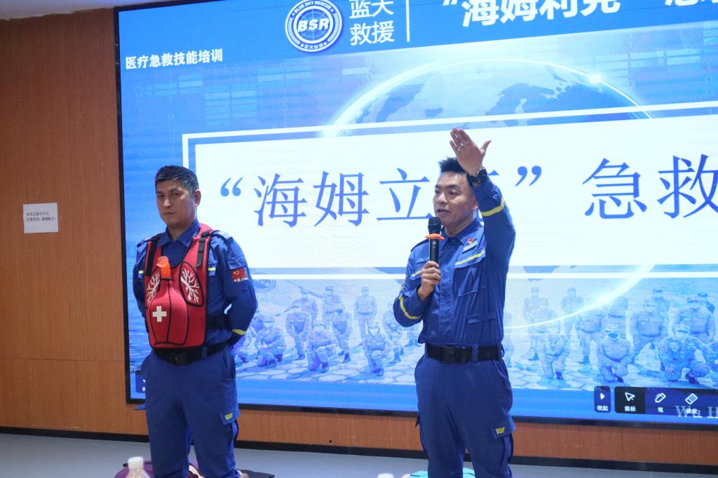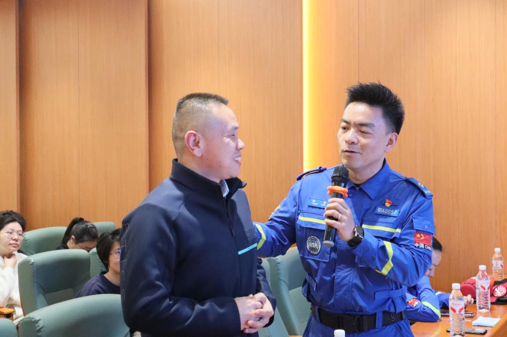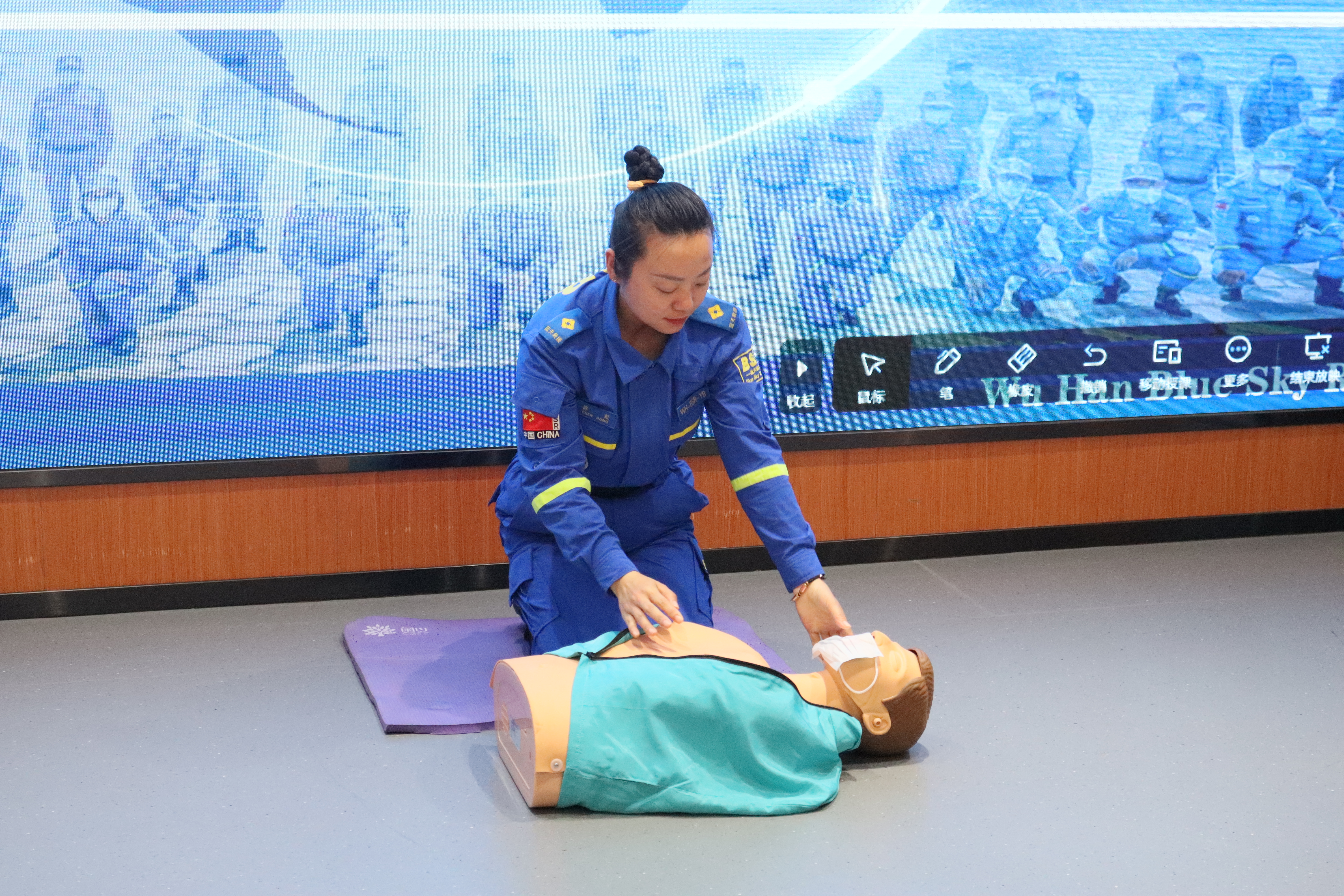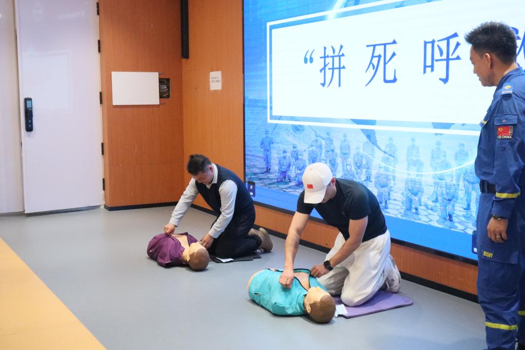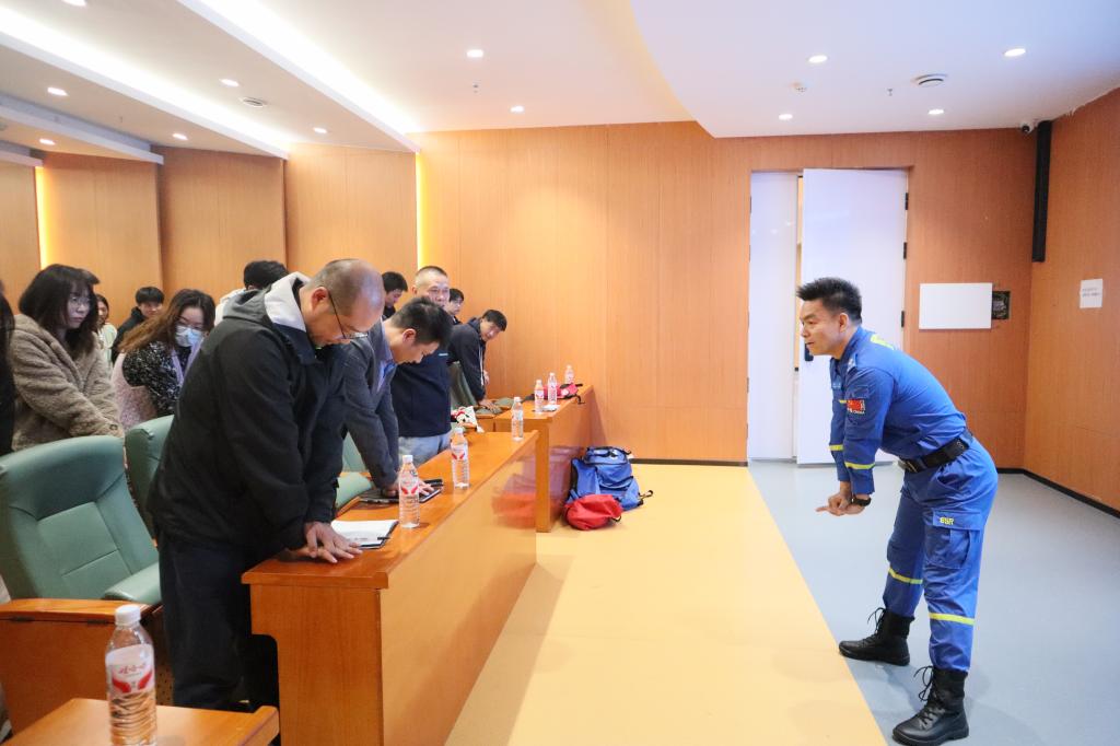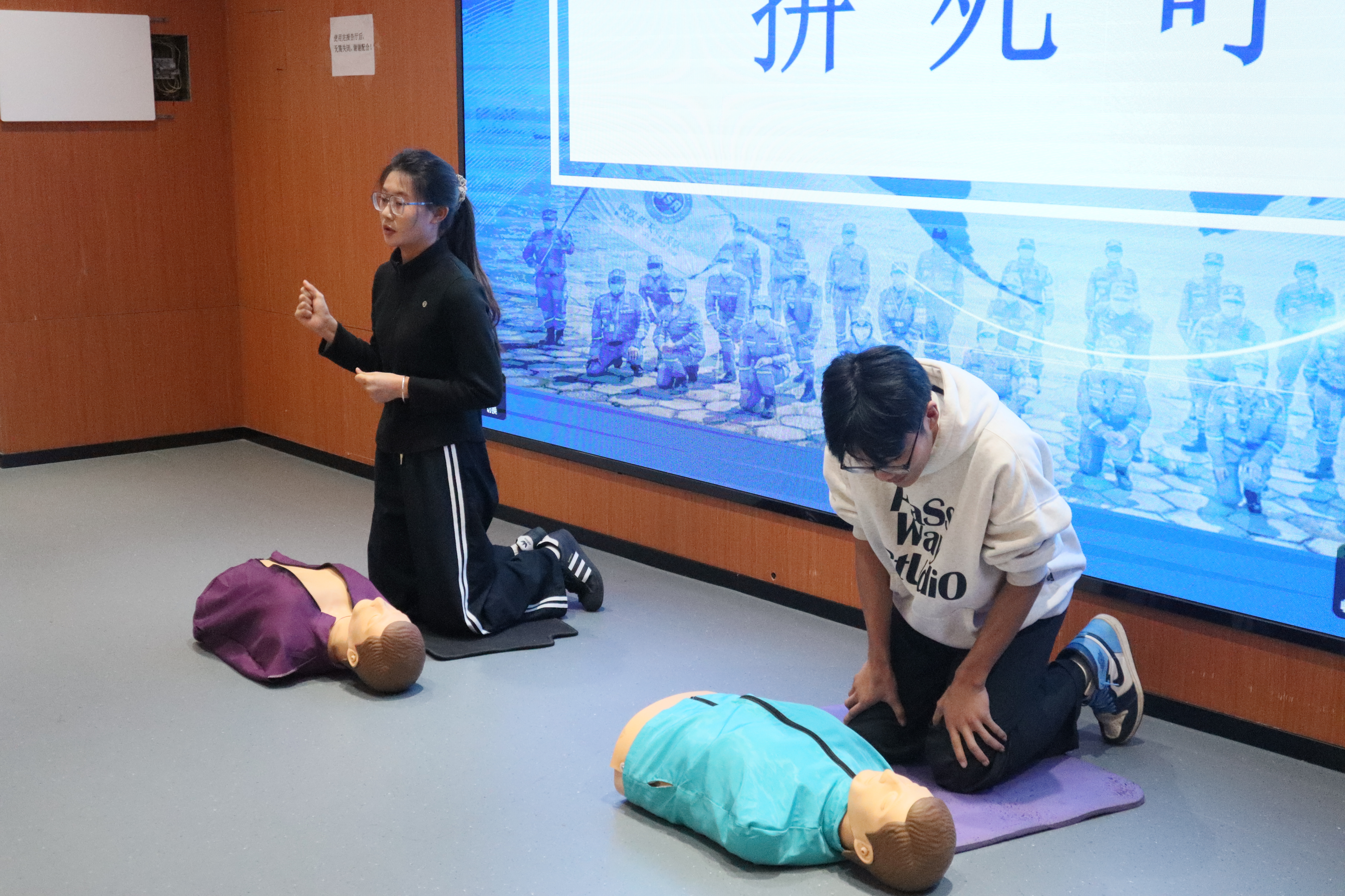 三位教官结合自身丰富的一线救援实战经验,以“理论精讲+实操演示+互动指导”的立体化培训模式,从建立正确应急意识、心肺复苏(CPR)、海姆立克急救法三个核心方面展开系统教学。教官们首先阐释了突发事故“黄金4分钟”救援的重要性,结合真实救援案例,剖析了应急处置中“不会救、不敢救、救不对”的常见问题,引导师生摒弃认知误区,树立“生命至上、科学施救”的应急理念。
