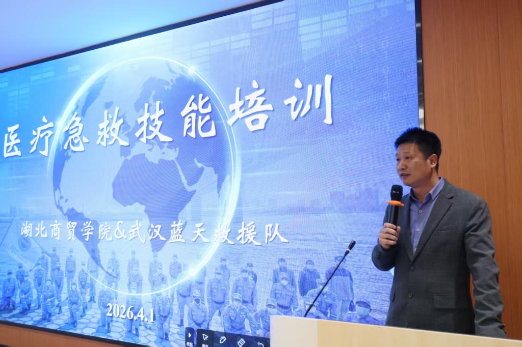 熊浩在开场讲话中代表学院对武汉蓝天救援队教官团队的到来致以衷心感谢。他指出,校园安全是育人工作的底线,应急急救能力是师生必备的生存技能。此次培训是学院落实“磐石行动2026”的具体举措,旨在通过专业指导,让师生掌握实用急救技能,真正实现“人人学急救、急救为人人”,为自身及他人生命健康增添保障。