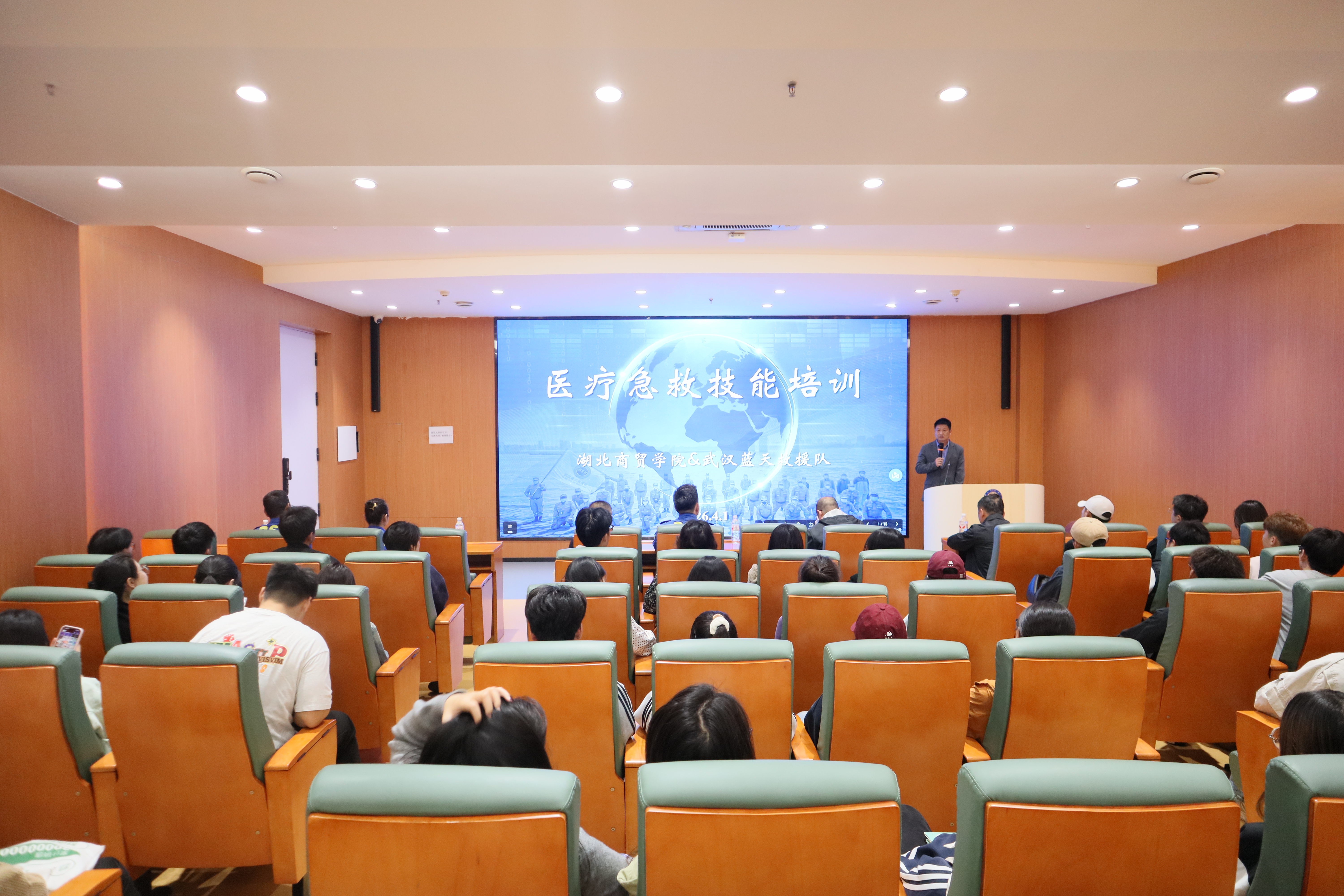为深入推进“磐石行动2026——大学生全方位安全守护工程”,全面强化师生安全防范意识与应急处置能力,切实筑牢校园安全屏障,夯实平安校园建设根基,4月1日,体育与健康学院特邀学院志愿服务共建单位——武汉蓝天救援队,于学校图书馆报告厅开展专项医疗急救知识培训。武汉蓝天救援队杨堃、黄小宇、陈鸿三位资深教官担任主讲,学院全体党政班子成员、150余名师生代表齐聚现场参训,活动由学院院长兼党总支书记熊浩主持。