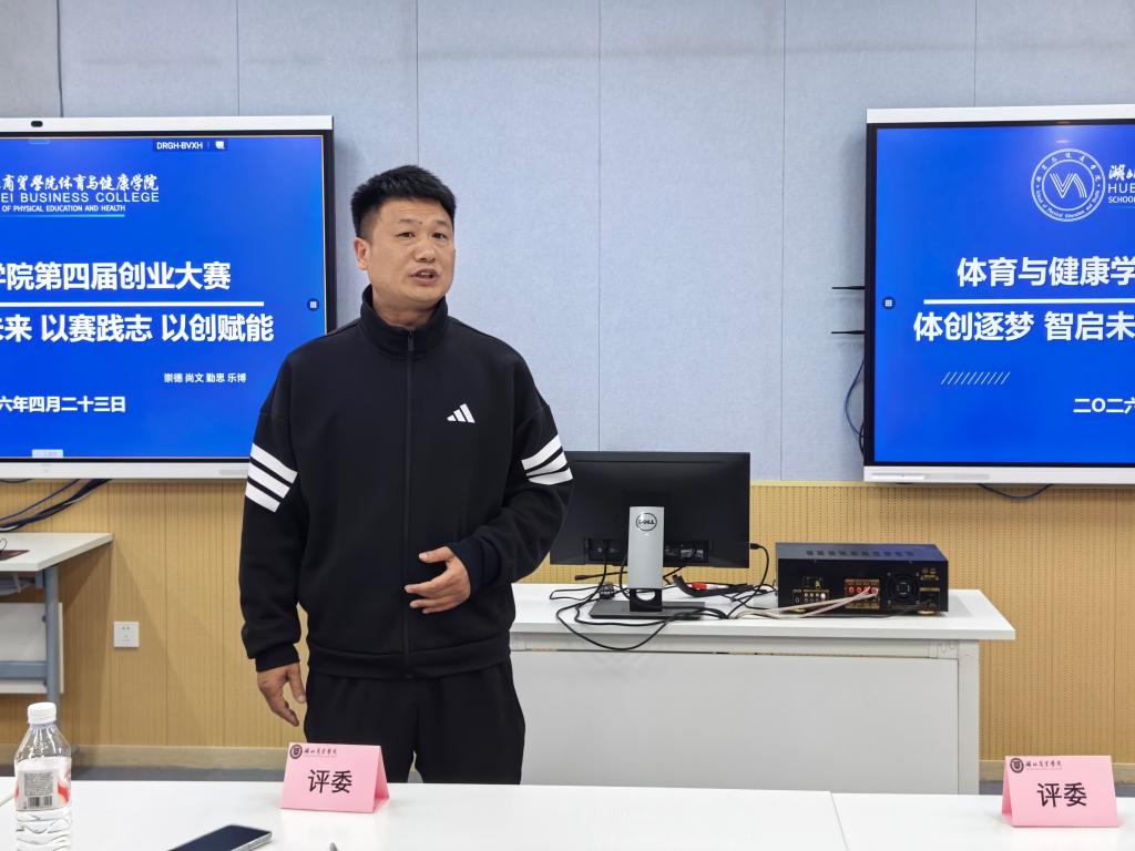 为深入贯彻落实立德树人根本任务,推动体育专业、大健康专业与创新创业教育深度融合,激发学子创新思维、创业热情与实践能力,4月23日,体育与健康学院第四届创新创业大赛在咸宁校区C211多媒体教室顺利举办。学院院长熊浩、党总支副书记吴琼枝、法商学院创业导师王开涛、社会体育教研室主任汪可非、辅导员关耀钦担任评委,各专业师生代表到场观摩。
